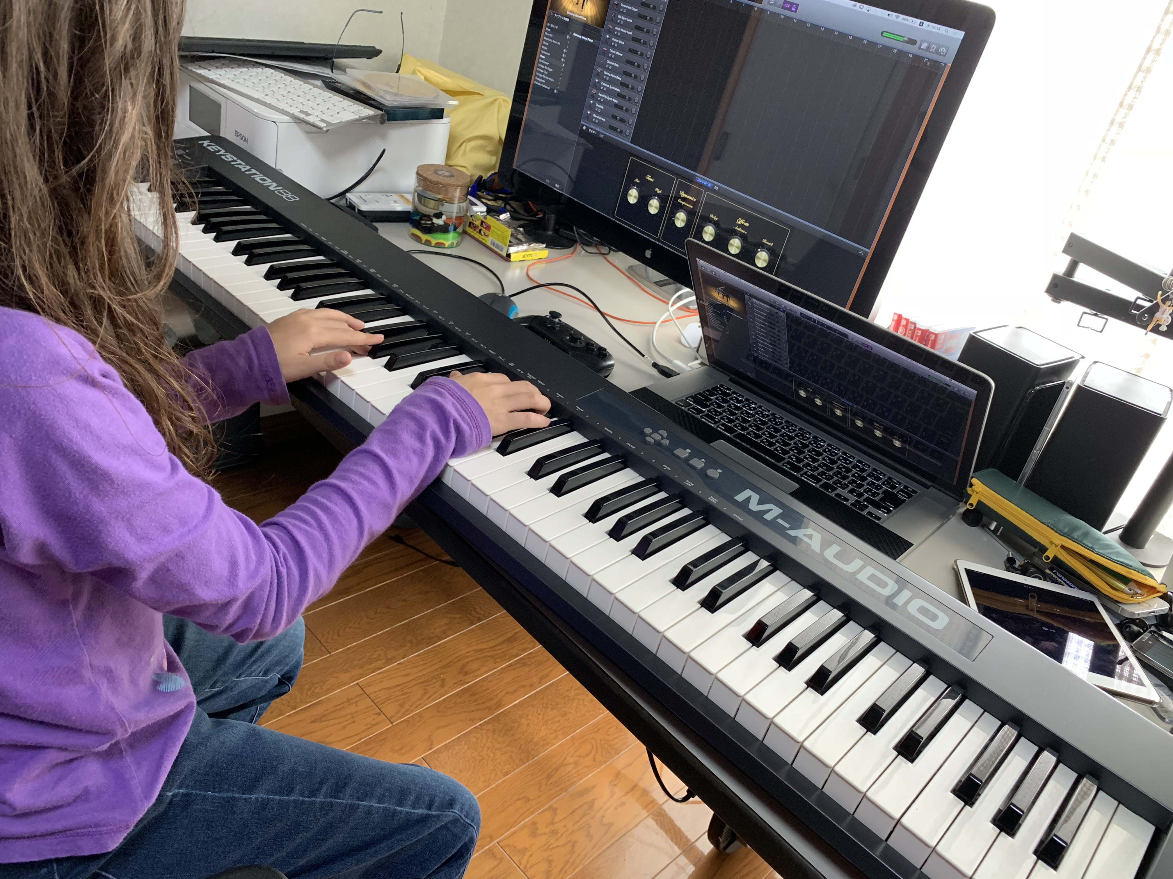 練習するときは大きいサイズ?のMIDIキーボードをMACBOOKPROにUSBでつないで
