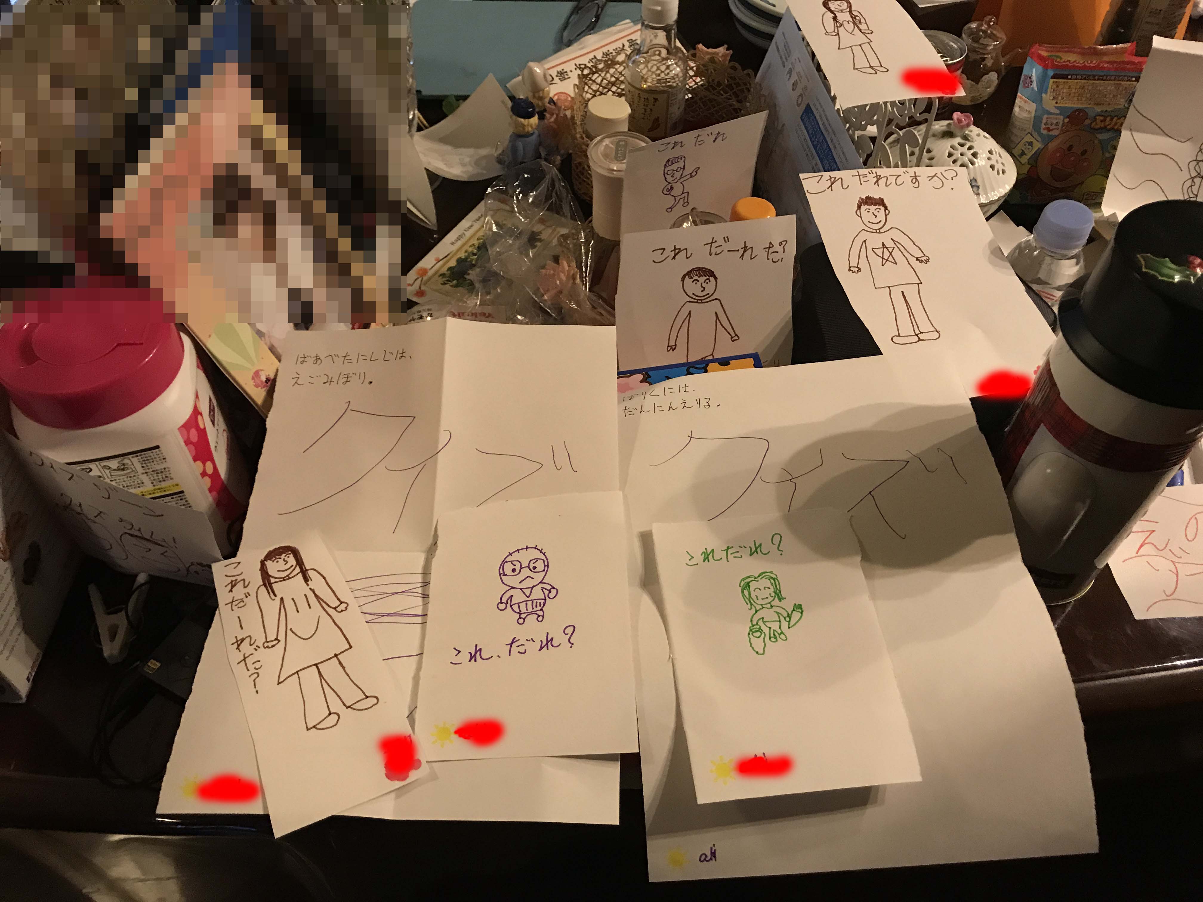 3人で似顔絵を描いてクイズごっこしたり〜。