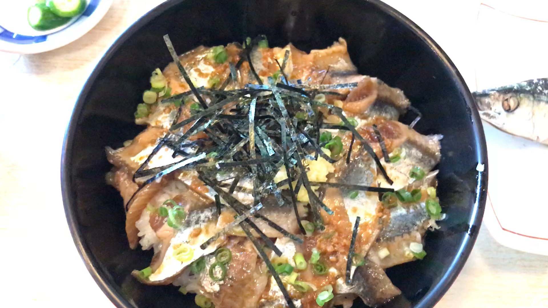 「お待たせしましたー、サンマのずけ丼でーす」